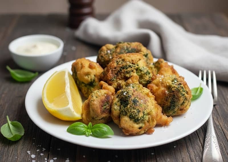 2.- En un recipiente, batimos los huevos junto con la leche, el ajo y perejil picados, sal, pimienta y la levadura. Agregamos la harina poco a poco hasta obtener una masa cremosa. Luego, pasamos los ramilletes por esta mezcla y los freímos en abundante aceite caliente.