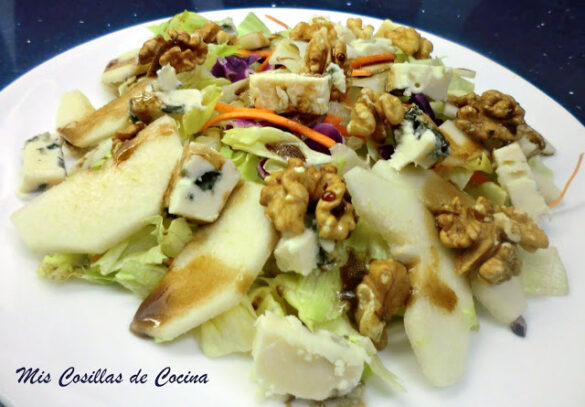 La combinación de sabores de esta Ensalada de peras con Roquefort y nueces, entre la dulzura de las peras, la intensidad del queso Roquefort y el crujiente de las nueces es simplemente irresistible.