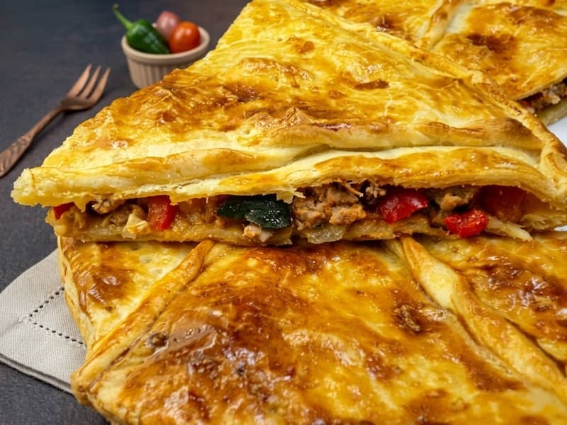 Cómo hacer Empanada de pisto y carne con masa quebrada: