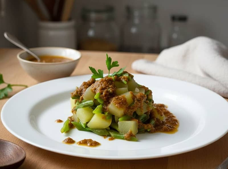 Ensalada de judías verdes y patata, acompañada de una deliciosa vinagreta con tomates secos. Una receta sencilla ideal para tus menús diarios, que puedes disfrutar fría o templada.
