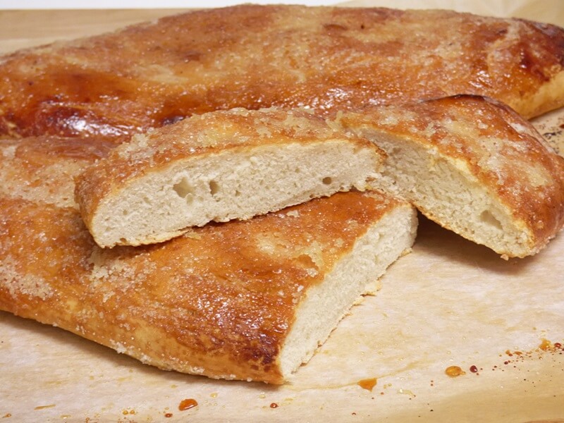 Coca de forner o Coca de pan. Esta coca es típica de Cataluña, es muy sencilla y con un chocolate caliente está deliciosa.