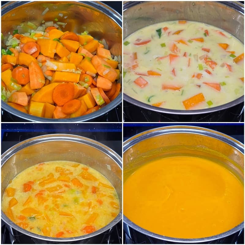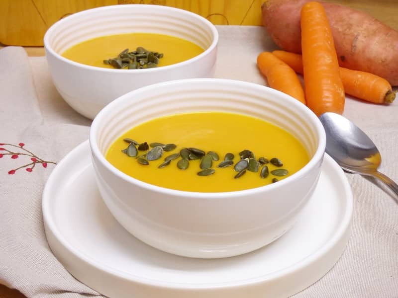 Cómo hacer Crema de calabaza boniato y zanahoria con leche de coco: