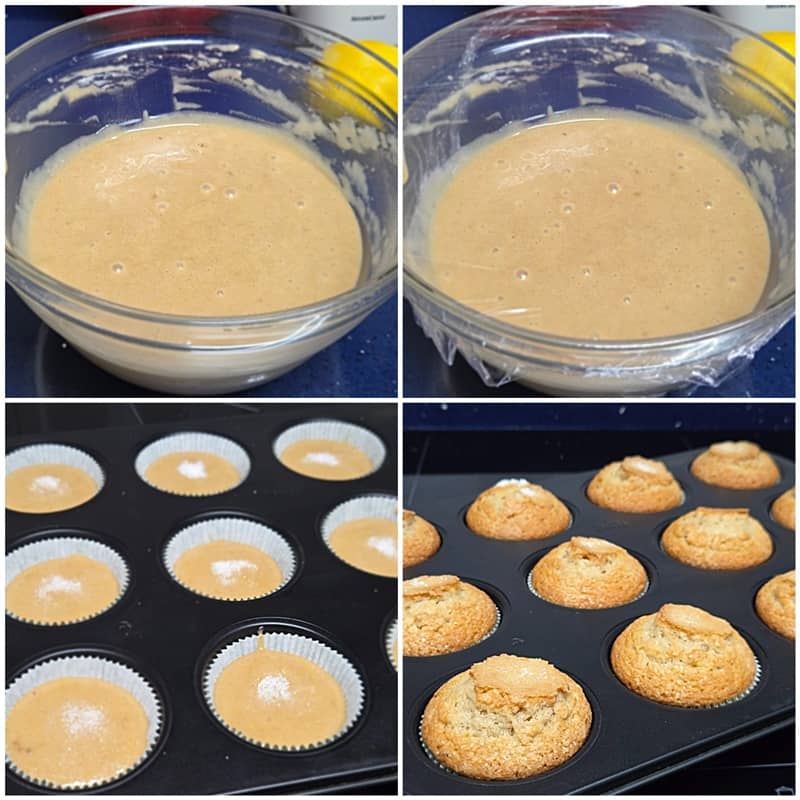 8.- Transcurridas las dos horas, precalentamos el horno a 200 °C con calor arriba y abajo, y preparamos los moldes para las magdalenas.