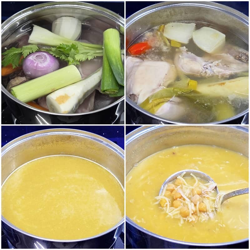 Cómo hacer Sopa de pollo con fideos y garbanzos:
